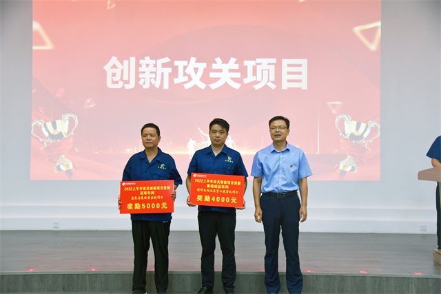 會(huì)上,李風(fēng)明宣讀了公司對2022年上半年度CQI項(xiàng)目、創(chuàng)新攻關(guān)成果等表彰決定;盛守祥為CQI項(xiàng)目代表、創(chuàng)新攻關(guān)一等獎(jiǎng)項(xiàng)目代表頒發(fā)獎(jiǎng)勵(lì)牌,總經(jīng)理閆英山為各車間創(chuàng)新攻關(guān)其他受獎(jiǎng)項(xiàng)目代表頒發(fā)獎(jiǎng)勵(lì)牌,李風(fēng)明為質(zhì)量之星、效率之星、工藝操作之星受獎(jiǎng)代表頒發(fā)榮譽(yù)證書,公司安全總監(jiān)孫中然為現(xiàn)場6S之星、精益提案之星受獎(jiǎng)代表頒發(fā)榮譽(yù)證書。會(huì)議由公司團(tuán)委書記陳冰主持。