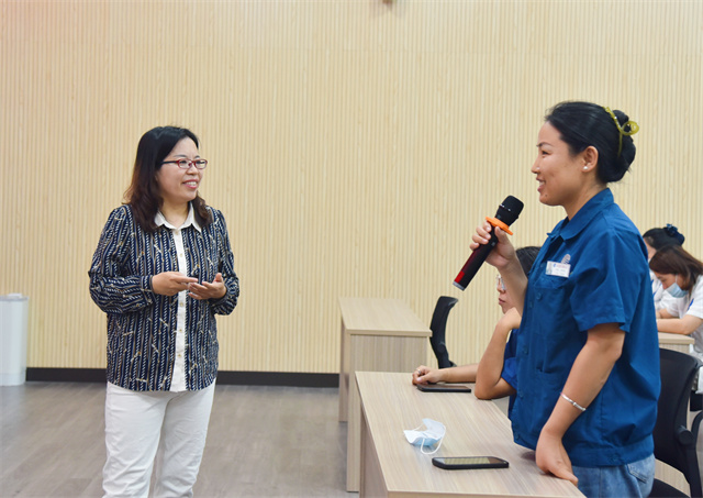 講座過程中,王春梅解讀了在家庭教育中“表達(dá)情緒”代替“用情緒表達(dá)”的內(nèi)涵和意義。在就如何引導(dǎo)孩子正確感悟、培養(yǎng)孩子養(yǎng)成良好習(xí)慣、給予孩子成長力量等方面,通過講理論、舉實(shí)例、現(xiàn)場討論等形式,深入淺出的為女職工進(jìn)行了分析和授課。