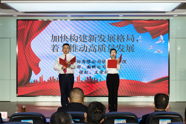 公司供應(yīng)鏈管理黨支部、面料公司黨支部代表張紅、王榮梓誦讀《加快構(gòu)建新發(fā)展格局 著力推動高質(zhì)量發(fā)展》。堅持實事求是,融入高質(zhì)量發(fā)展大局;堅持守正創(chuàng)新,拓寬高質(zhì)量發(fā)展路徑;堅持行穩(wěn)致遠(yuǎn),提升高質(zhì)量發(fā)展能力。華紡股份將以高質(zhì)量發(fā)展為目標(biāo),引領(lǐng)企業(yè)向更高水平闊步邁進(jìn)。