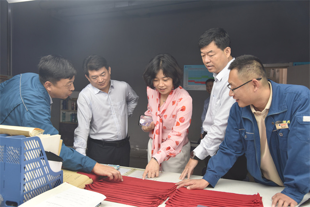 考核組一行先后到公司智云中心、檢測中心、綜合辦公區(qū)、服裝面料分公司、家紡分公司、花布分公司、研究院、王魯剛創(chuàng)新工作室進(jìn)行實(shí)地參觀考察。座談會上,與會人員觀看了企業(yè)宣傳片,詳細(xì)了解公司產(chǎn)品優(yōu)勢、產(chǎn)品研發(fā)、經(jīng)營銷售等情況。孫玉濤就公司發(fā)展歷史、生產(chǎn)制造、科技創(chuàng)新、人才培養(yǎng)、未來規(guī)劃等方面作情況介紹??疾旖M聽取了公司開展全員創(chuàng)新工作專題匯報,匯報主要從公司技術(shù)創(chuàng)新、理念創(chuàng)新、協(xié)調(diào)體系創(chuàng)新等層面展開,同時查看公司了創(chuàng)新工作檔案,并給予了指導(dǎo)性的建議。張艷麗指出,全員創(chuàng)新企業(yè)是群眾性的創(chuàng)新活動,華紡股份在引導(dǎo)鼓勵職工立足本職崗位、激發(fā)職工創(chuàng)新熱情和創(chuàng)造活力、提高職工自主創(chuàng)新能力、培育激勵工匠人才、推動企業(yè)科技進(jìn)步和新舊動能轉(zhuǎn)換等方面發(fā)揮了重要作用,希望華紡股份繼續(xù)提高產(chǎn)業(yè)承載能力和市場競爭力,動員激勵廣大企業(yè)職工全面參與創(chuàng)新,全面提升全員創(chuàng)新工作,推動企業(yè)經(jīng)濟(jì)實(shí)現(xiàn)高質(zhì)量發(fā)展。