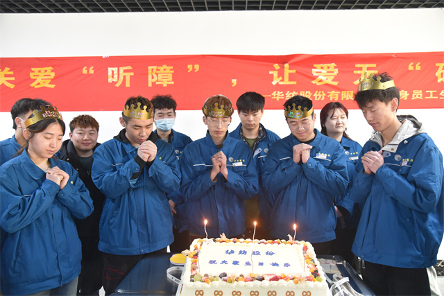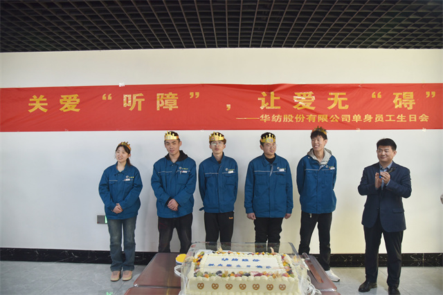 3月28日,公司黨委、工會(huì)、團(tuán)委、關(guān)工委聯(lián)合舉辦了以“關(guān)愛‘聽障’”,讓愛無‘礙’”為主題的華紡股份有限公司單身員工生日會(huì)。公司黨委委員、人力行政副總經(jīng)理孫玉濤,工會(huì)、團(tuán)委、關(guān)工委主要負(fù)責(zé)同志、服裝車間相關(guān)負(fù)責(zé)同志以及30名聽障員工參加活動(dòng)。