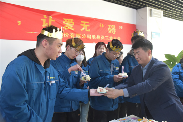 活動(dòng)在輕松歡樂的氛圍中拉開帷幕,孫玉濤為3月份生日的單身員工們送上生日祝福。