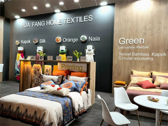 此屆法蘭克福家紡展,華紡股份家紡分公司打造了以“Green world”為主題,以綠色環(huán)??沙掷m(xù)的特色纖維產(chǎn)品為主材質(zhì),研發(fā)了醋酸系列/真橙系列/木棉系列/絲質(zhì)系列/超柔系列/麻系列六大系列產(chǎn)品,從材質(zhì)、功能、膚感、科技、花型、款式等多方面對(duì)產(chǎn)品進(jìn)行了融合升級(jí),吸引了來(lái)自法國(guó)、意大利、葡萄牙等諸多國(guó)家的客戶進(jìn)入展位進(jìn)行咨詢洽談!其中,迎合歐洲市場(chǎng)喜好的亞麻、漢麻提花、色織簡(jiǎn)約條紋產(chǎn)品也成功吸引了來(lái)自歐美的客戶。