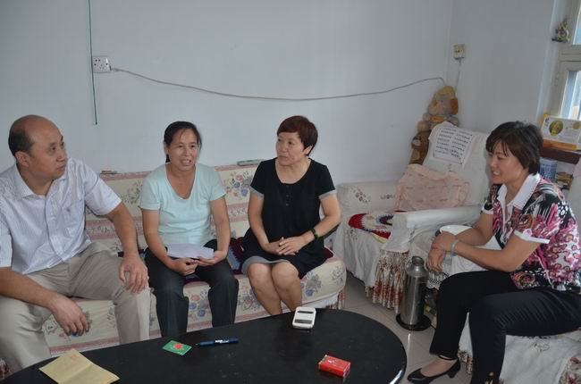 市總工會幫扶中心主任孫戰(zhàn)洪、市總工會法律保障部主任左麗華等到華紡公司職工家中慰問。