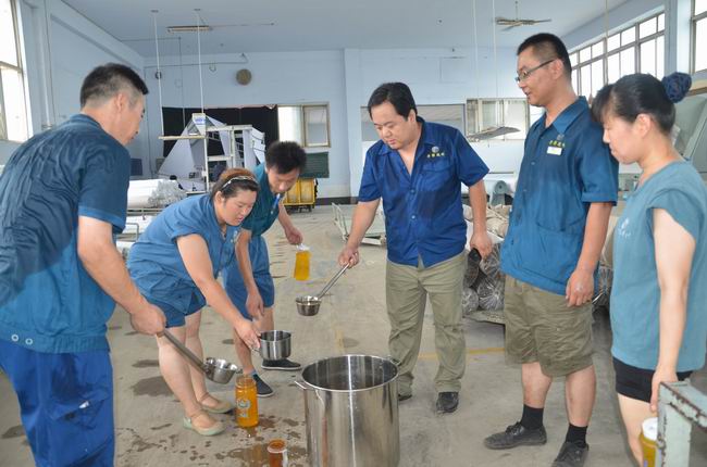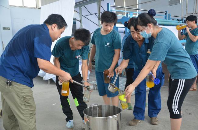 7月29日,當日濱州市溫度高達35℃,華紡股份有限公司管理者將冰好的橘子粉化制飲品到一線生產崗位,一一分發(fā)到正在當班的員工水杯中,緩解高溫為員工帶來的酷熱,送上一份清涼和關愛。